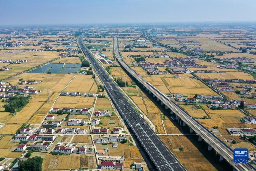 京滬高速公路擴建工程淮安段現場(chǎng)(6月6日攝,無(wú)人機照片)。