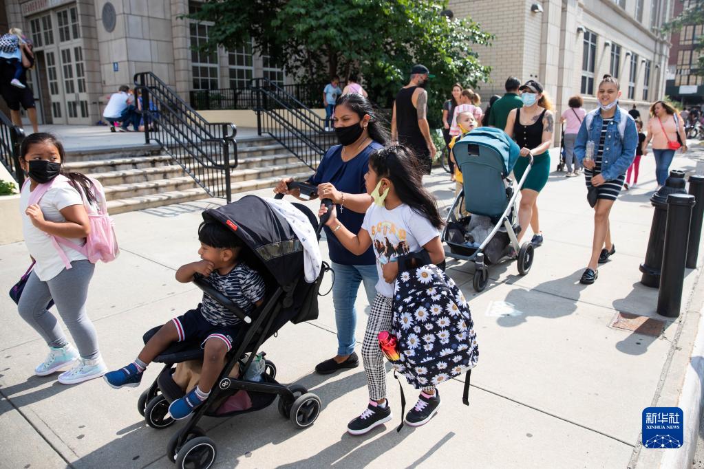 9月13日,家長(cháng)在美國紐約一所公立學(xué)校外接學(xué)生放學(xué)。當日,紐約市公立中小學(xué)新學(xué)年開(kāi)學(xué),并全面恢復在校教學(xué)。