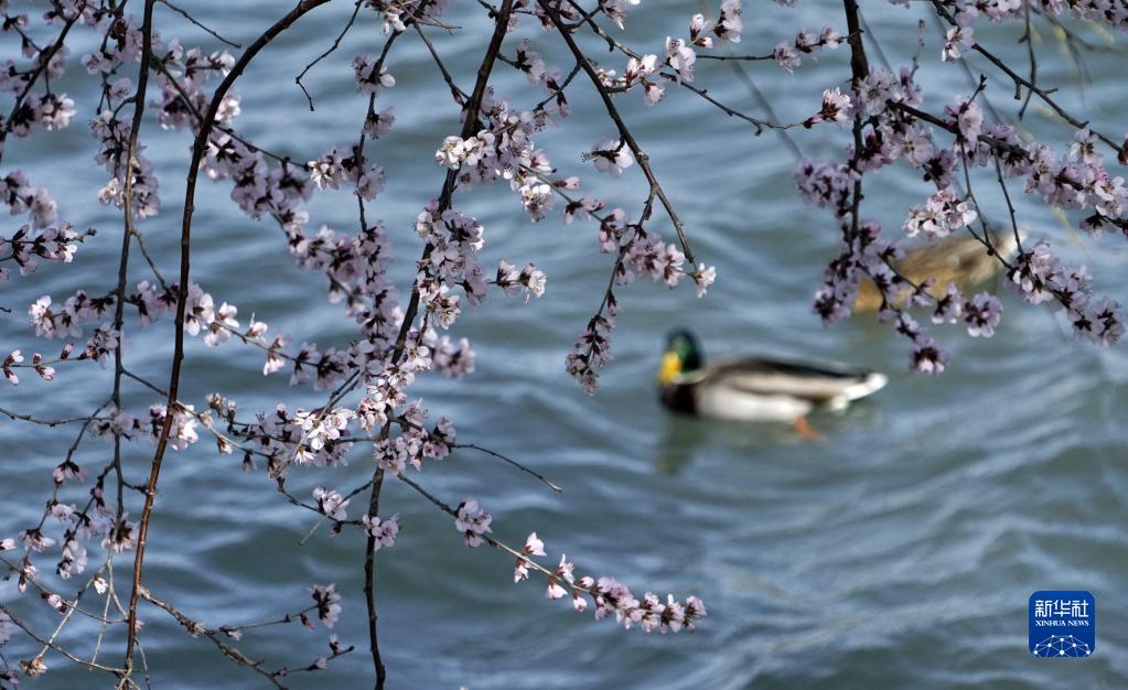 頤和園內昆明湖畔盛開(kāi)的桃花(3月12日攝)。