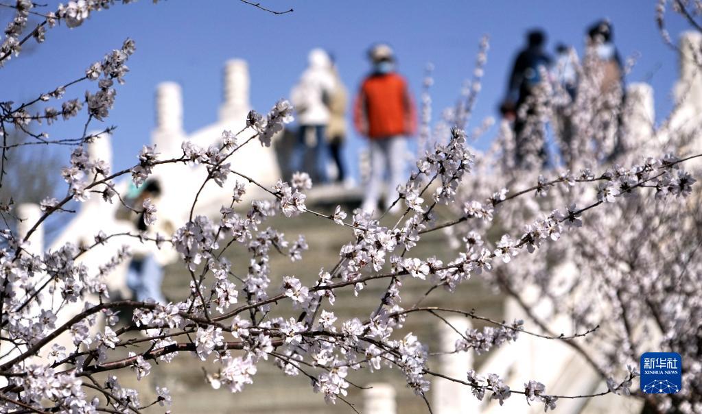 3月12日,市民在頤和園賞花。