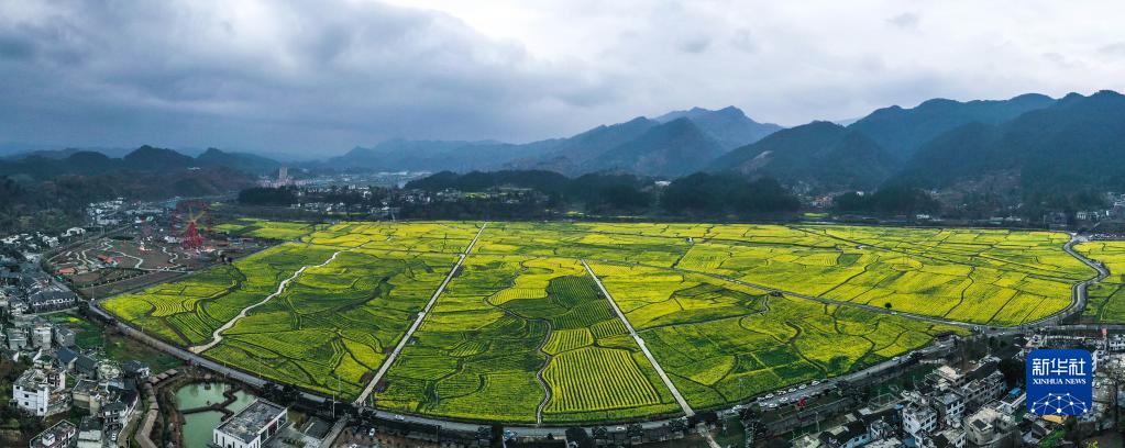3月12日拍攝的貴州省貴定縣盤(pán)江鎮“金海雪山”景區油菜花田(無(wú)人機全景照片)。