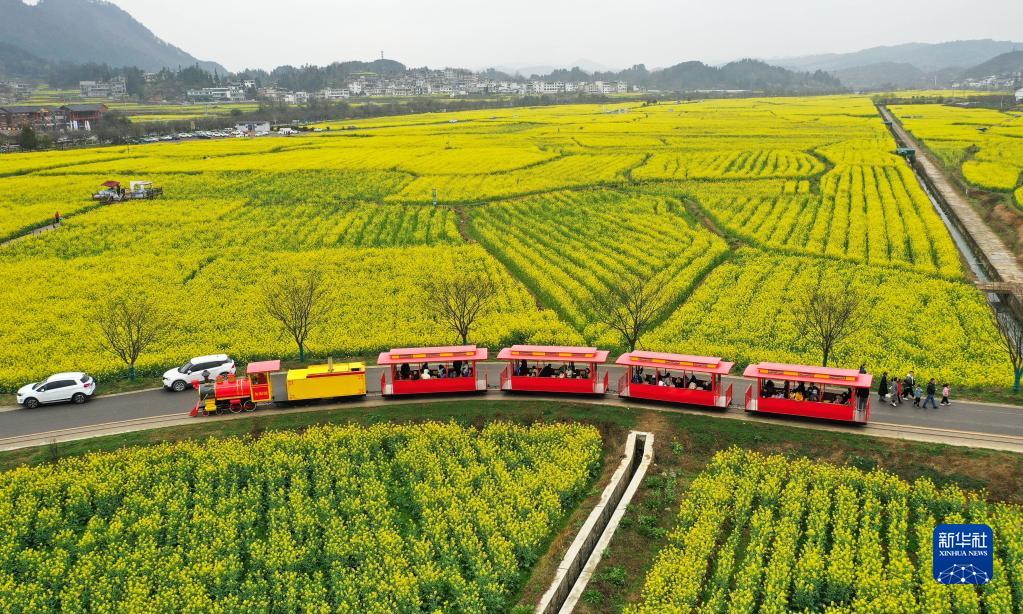 近年來(lái),貴州省黔南布依族苗族自治州貴定縣大力發(fā)展油菜、刺梨、酥梨、黃桃等產(chǎn)業(yè),并形成以“賞花經(jīng)濟”為特色的“農業(yè)+旅游”融合產(chǎn)業(yè),帶動(dòng)鄉村餐飲、民宿、交通等旅游產(chǎn)業(yè)同步發(fā)展,助力鄉村振興。