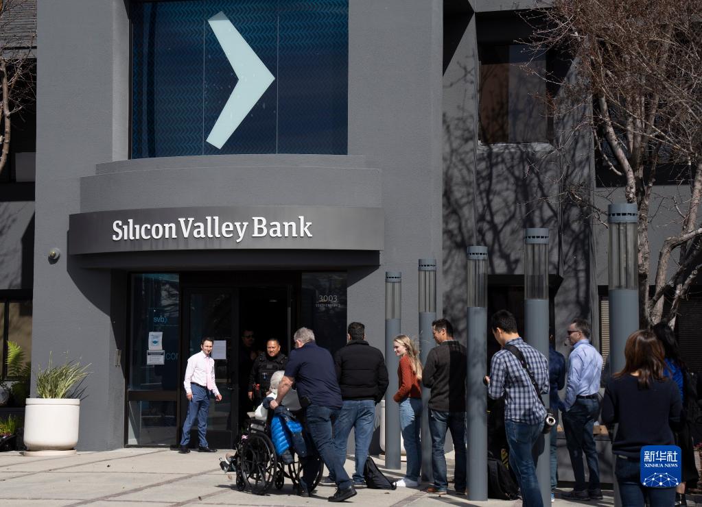 3月13日,客戶(hù)在美國加利福尼亞州圣克拉拉市硅谷銀行總部外排隊等候辦理業(yè)務(wù)。