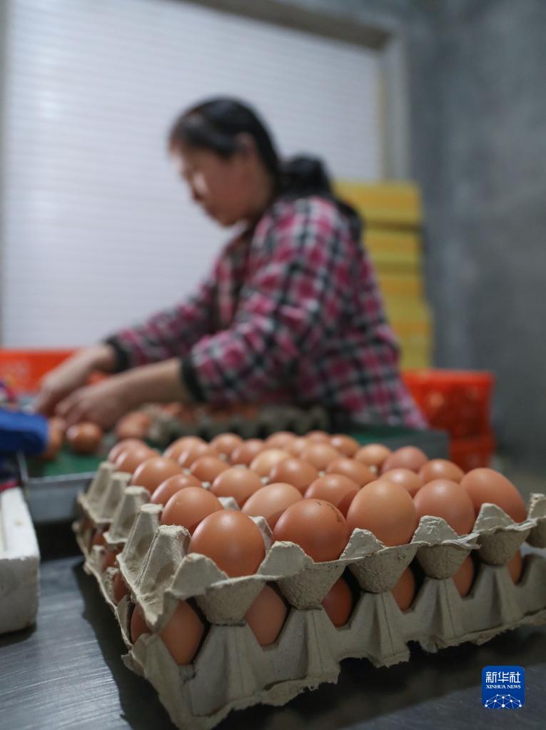 3月14日,在位于岫巖縣牧牛鎮的遼寧巖海牧業(yè)有限公司產(chǎn)蛋一車(chē)間,工作人員將雞蛋裝盒。