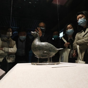3月14日,參觀(guān)者在戰國鳥(niǎo)形尊展柜前駐足觀(guān)看。