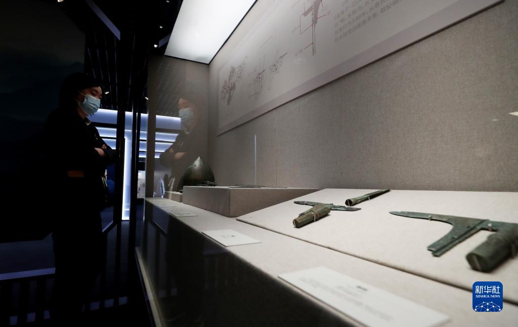 3月14日,參觀(guān)者在一組青銅兵器展品前駐足觀(guān)看。
