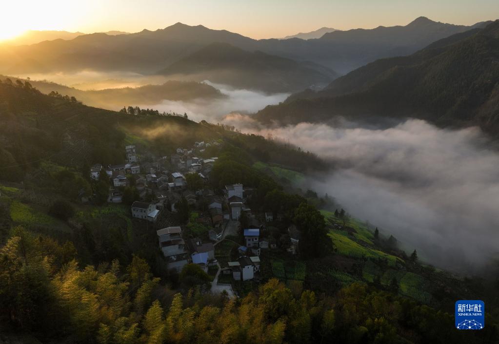 當日,安徽省黃山市歙縣霞坑鎮石潭村現壯觀(guān)云海,春景如畫(huà)。