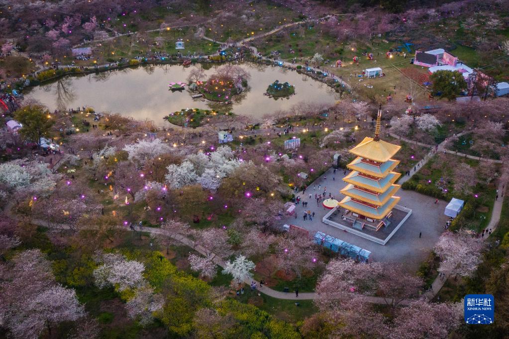 3月14日拍攝的東湖櫻園(無(wú)人機照片)。