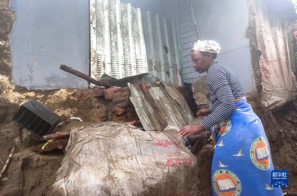 3月14日,在馬拉維南部的布蘭太爾地區,一名女子在修整被毀壞的房屋。