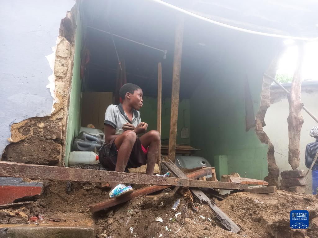 3月14日,在馬拉維南部的布蘭太爾地區,一名男孩坐在一棟被風(fēng)暴毀壞的房子里。
