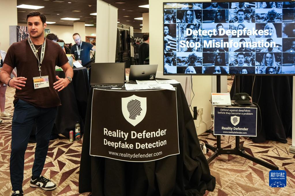 3月11日,在“西南偏南”大會(huì )和藝術(shù)節上,一名工作人員正在介紹“真相捍衛者”技術(shù),該技術(shù)可為企業(yè)和實(shí)體提供網(wǎng)絡(luò )保護,防止其遭受“深度偽造”和自動(dòng)生成內容的欺詐與破壞。