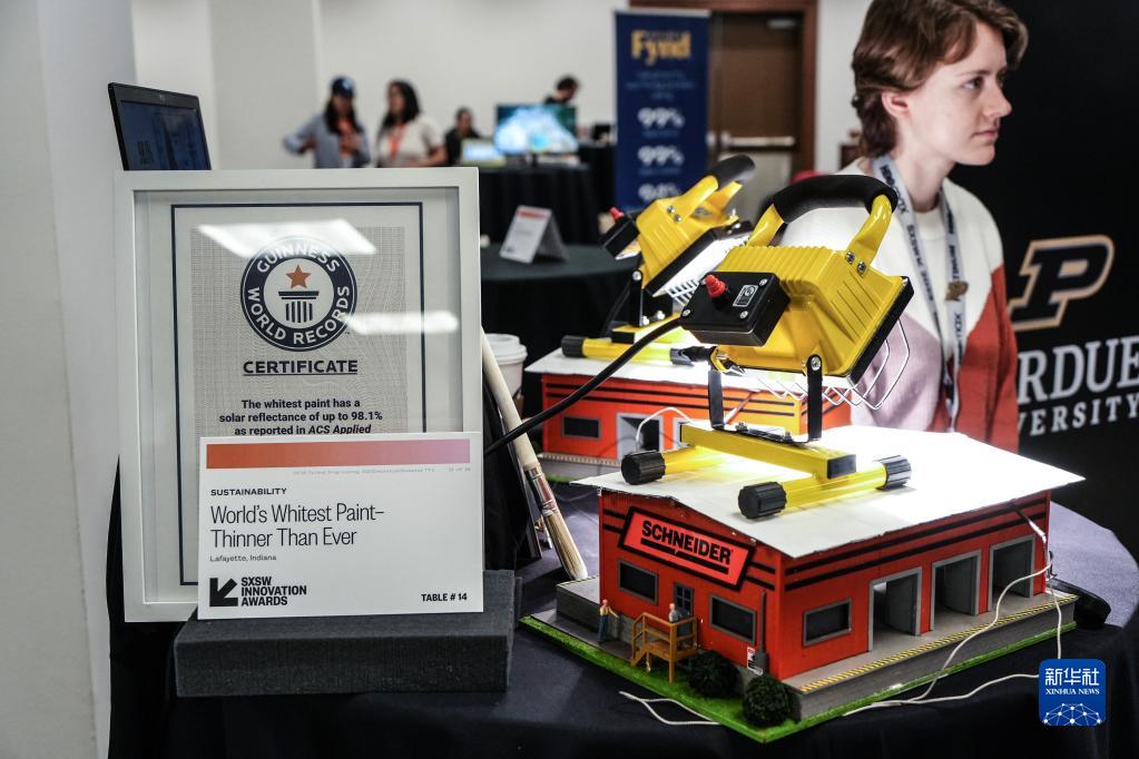 3月11日,在“西南偏南”大會(huì )和藝術(shù)節上,美國普渡大學(xué)展出一種已獲吉尼斯世界紀錄認證的納米多孔涂料,可用于運輸工具外部降溫,減少空調能耗。