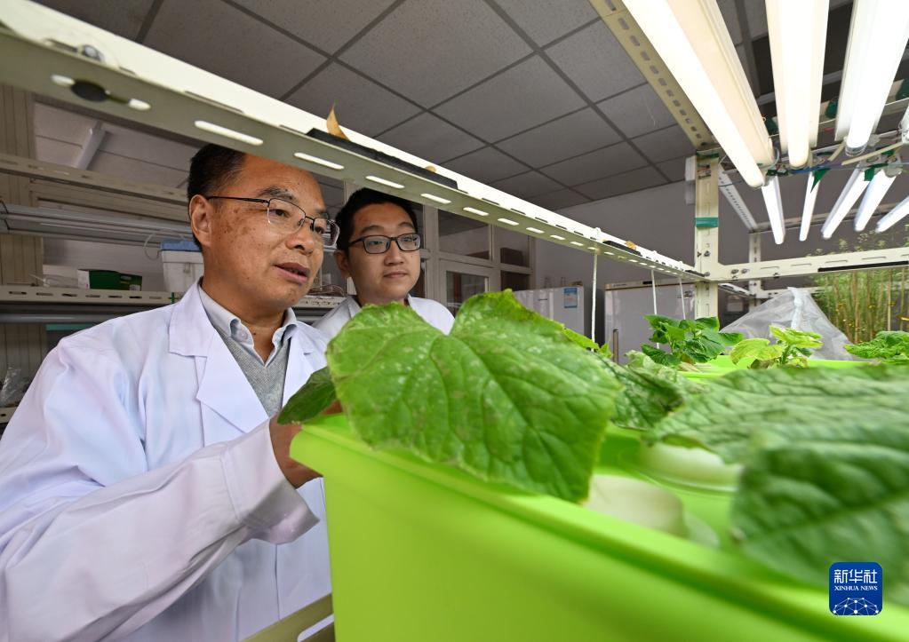 3月14日,在天津市農業(yè)科學(xué)院黃瓜研究所,杜勝利研究員(左)與研究生就試驗黃瓜植株表現進(jìn)行分析研討。