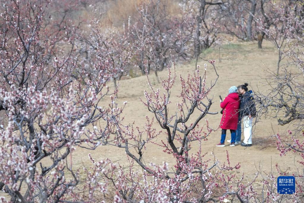 3月15日,游客在濟南長(cháng)清區萬(wàn)畝杏園內觀(guān)賞杏花。