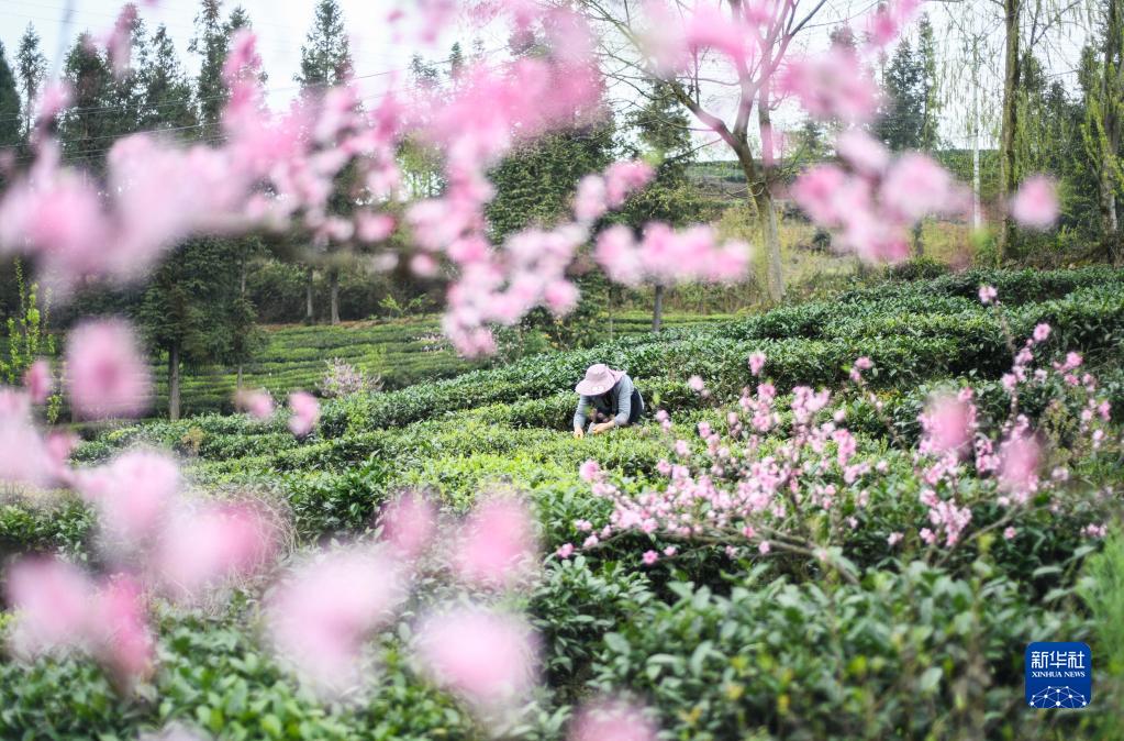 3月15日,村民在貴州省黔西南布依族苗族自治州晴隆縣沙子鎮沙子社區的茶山上采茶。