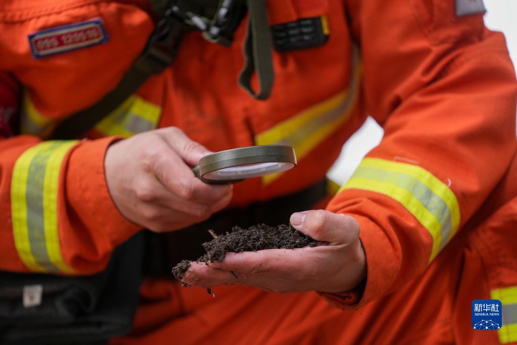 3月15日,鞏留縣森林消防大隊一名指揮員通過(guò)儀器分析林下可燃物。