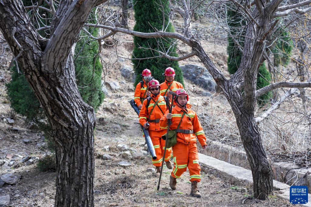 3月15日,長(cháng)清區國有蓮臺山林場(chǎng)防火中隊隊員在林區巡護。