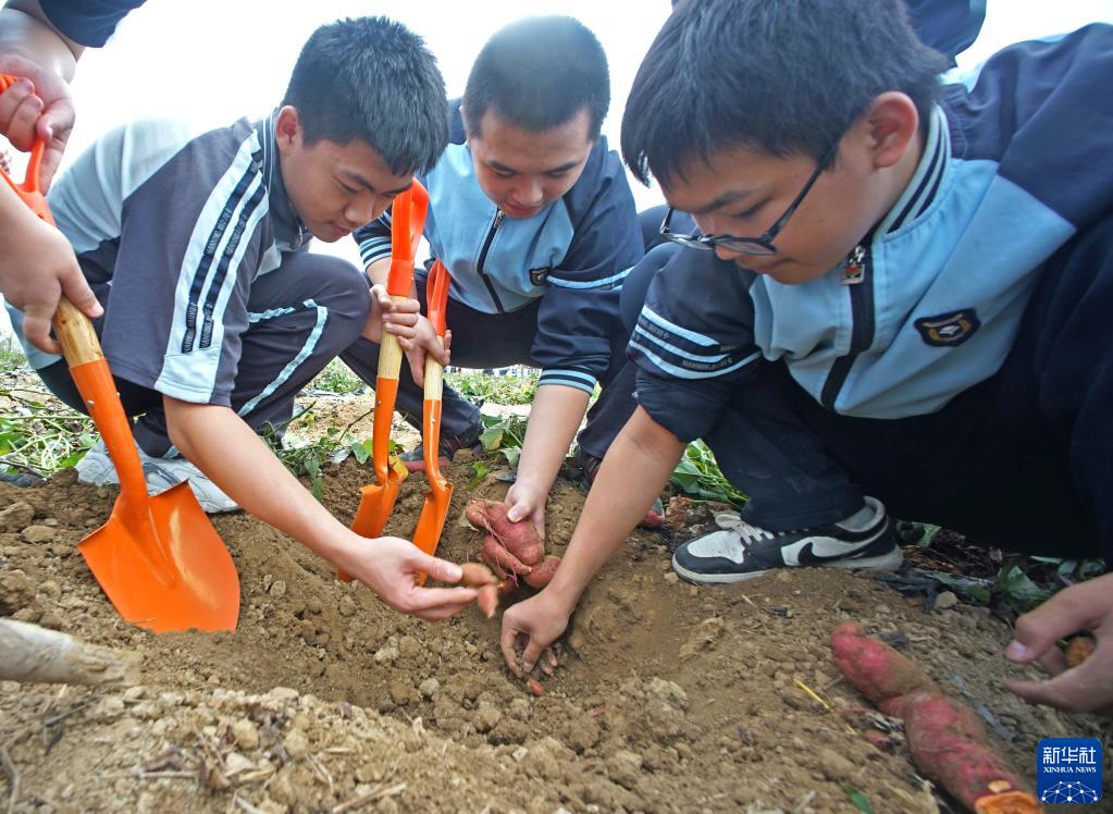 當日,廣西南寧市江南區沙井中學(xué)“田間課堂”開(kāi)課。孩子們走進(jìn)田間地頭,學(xué)習農事,體驗勞動(dòng)帶來(lái)的快樂(lè )。