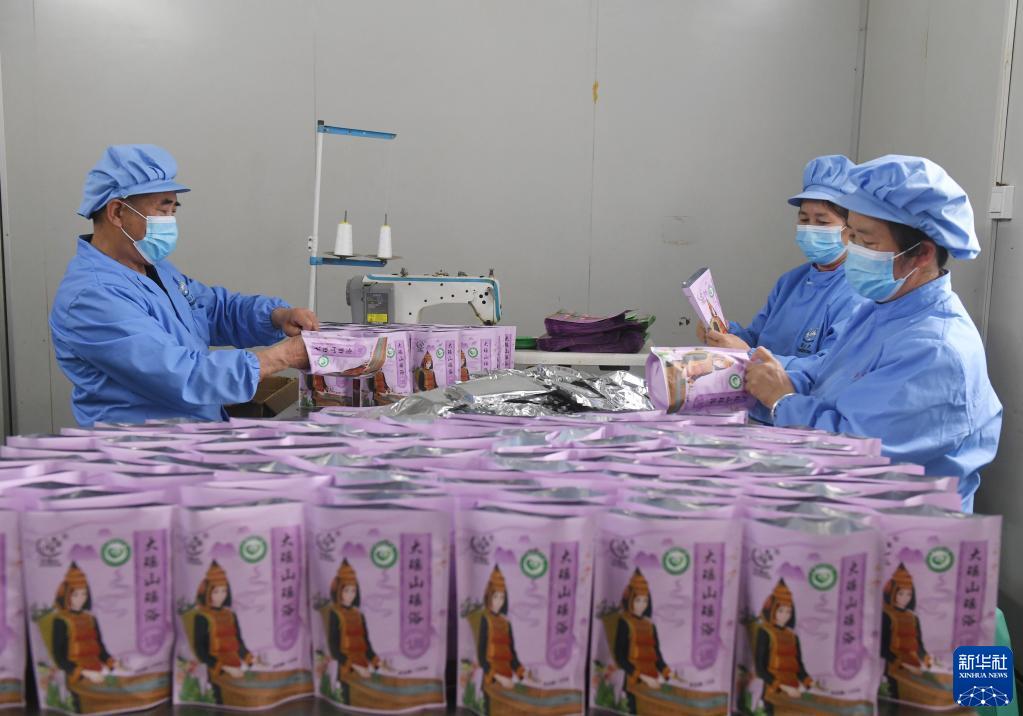 3月16日,在廣西金秀瑤族自治縣長(cháng)垌鄉平道村一家瑤醫藥生產(chǎn)企業(yè),員工在包裝產(chǎn)品。