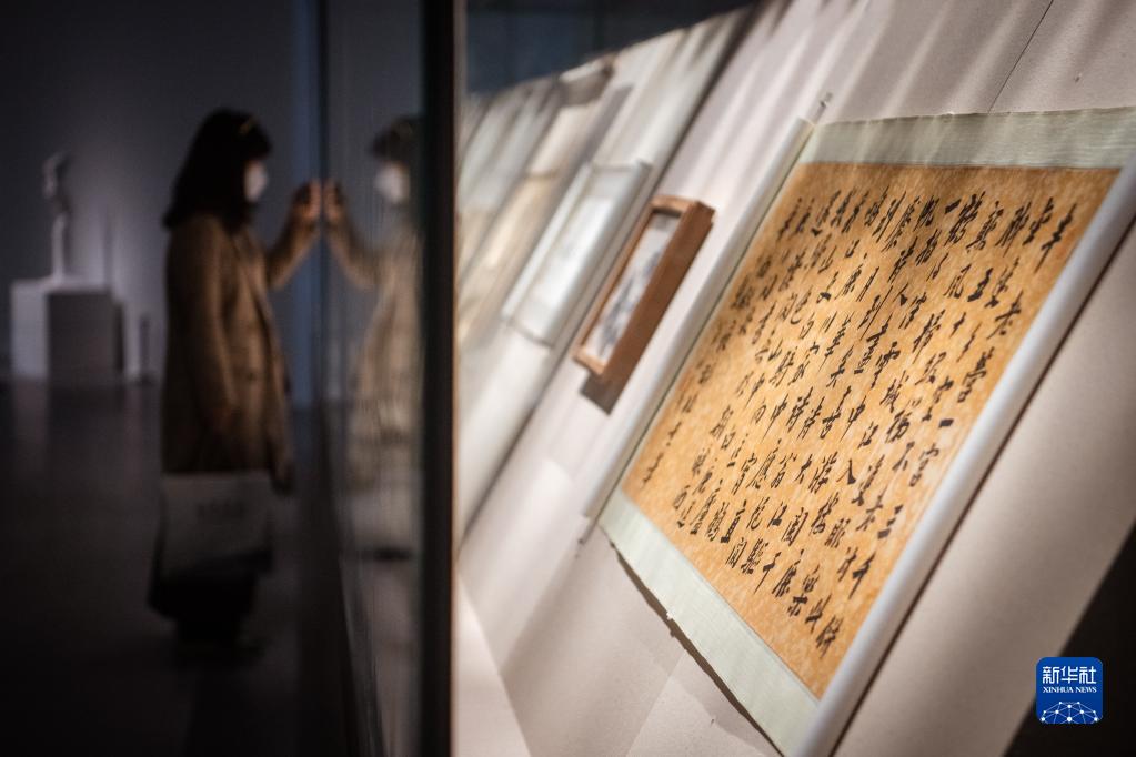3月16日,參觀(guān)者觀(guān)看展出文獻。