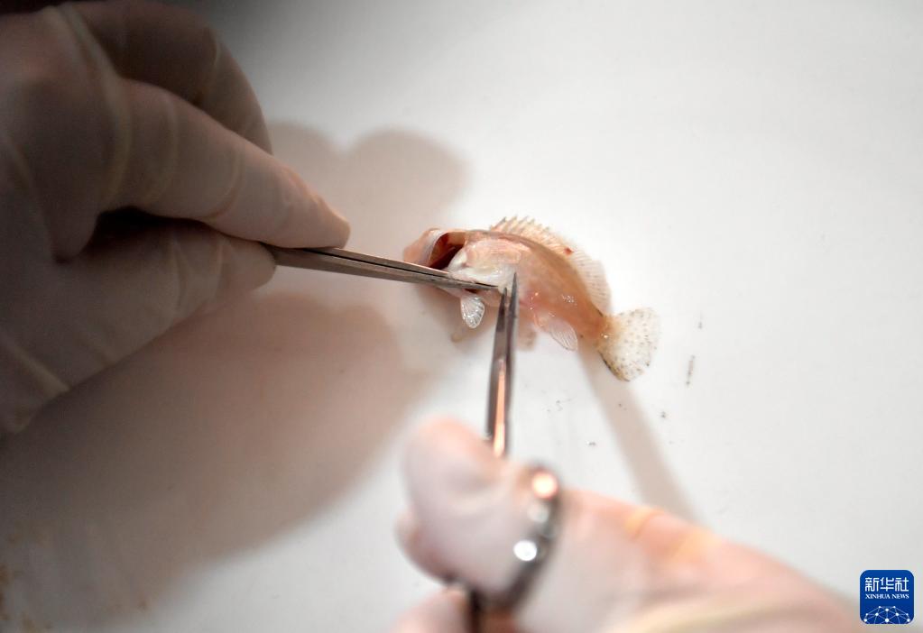 3月16日,在位于天津市濱海新區現代農業(yè)產(chǎn)業(yè)園的天津立達海水資源開(kāi)發(fā)有限公司實(shí)驗室,工作人員在解剖石斑魚(yú)魚(yú)苗。
