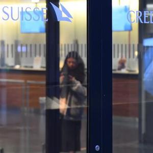 3月16日,在瑞士日內瓦,一名女子站在瑞士第二大銀行瑞士信貸銀行內。