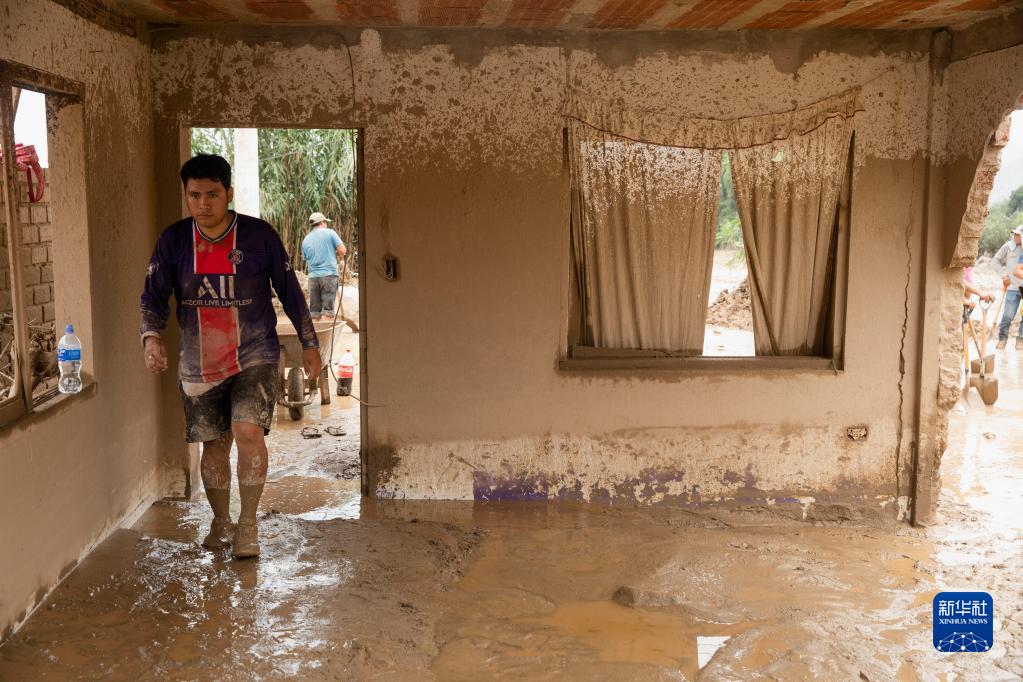 3月15日,在秘魯首都利馬南部的帕查卡馬克區,一位當地居民進(jìn)入受災的房屋。