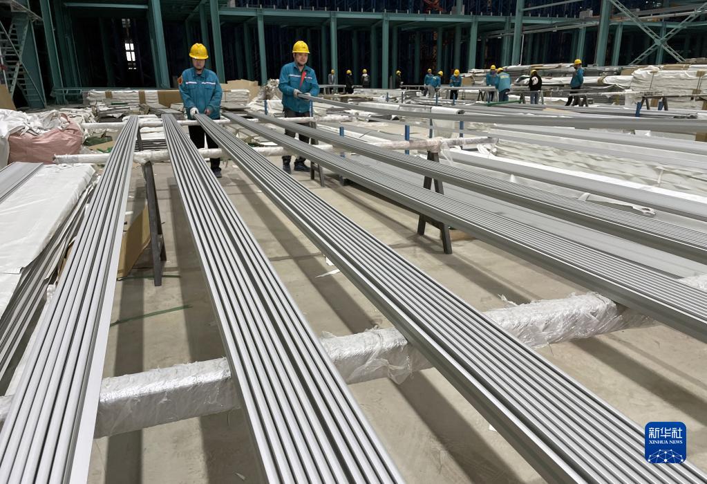 3月16日,山東省鄒平市禮德新能源科技有限公司工人在分揀光伏板鋁合金型材。