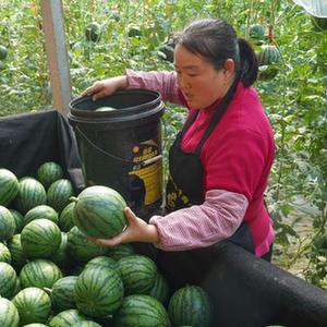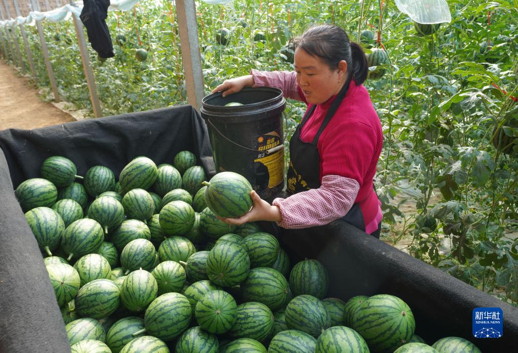 3月17日,在山東省鄒平市西董街道“摩訶山西瓜”高效農業(yè)產(chǎn)業(yè)園,瓜農在采摘剛成熟的大棚西瓜,準備銷(xiāo)往北京、廣東等地。