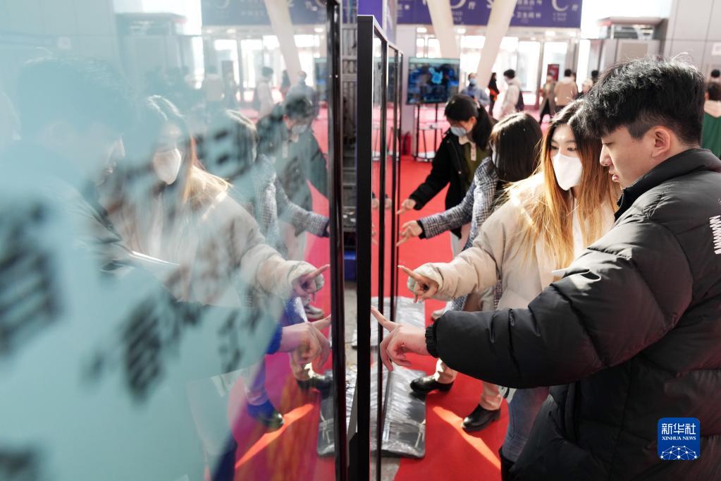 3月18日,求職者在招聘會(huì )的智慧屏區域進(jìn)行求職檢索。