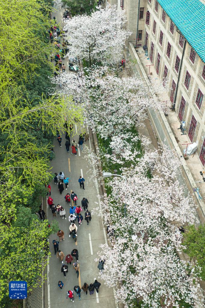 當日,武漢大學(xué)舉行抗疫醫護賞櫻專(zhuān)場(chǎng)。珞珈山下,來(lái)自全國各地的1.6萬(wàn)余名抗疫醫護人員及家屬赴約賞櫻。