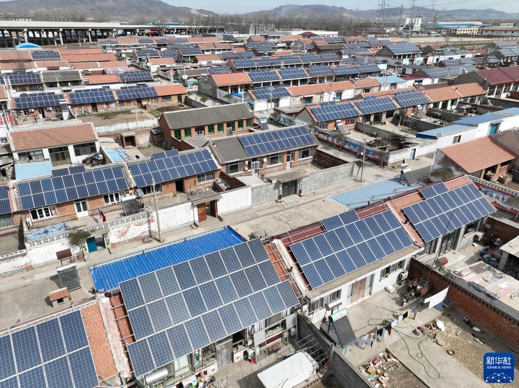 河北省玉田縣孤樹(shù)鎮莊戶(hù)村的屋頂分布式光伏面板(3月17日攝,無(wú)人機照片)。