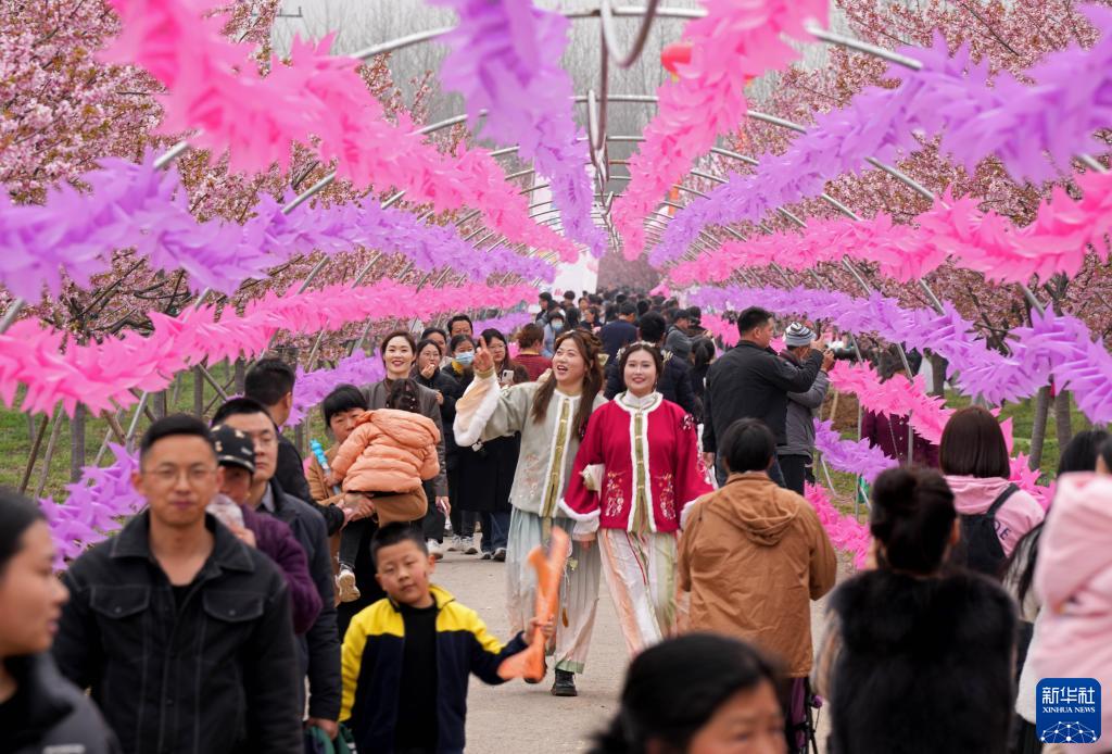 3月18日,游人在全椒縣馬廠(chǎng)鎮龍山櫻花園游玩。