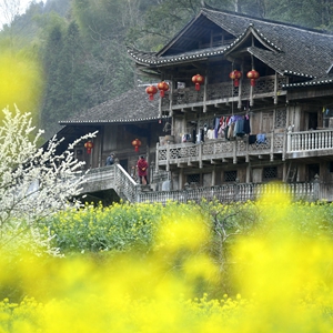 春暖花開(kāi)時(shí)節,在鄂西山區湖北省宣恩縣彭家寨風(fēng)景區,綻放的油菜花仿佛給古吊腳樓群周邊田園鋪上一層色彩鮮艷的花毯,滿(mǎn)園春色引來(lái)眾多游人。