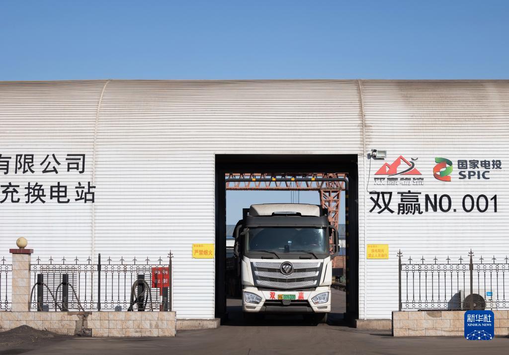 3月13日,唐山市豐南區的一家運輸企業(yè)的電動(dòng)重卡在換電站更換動(dòng)力電池。