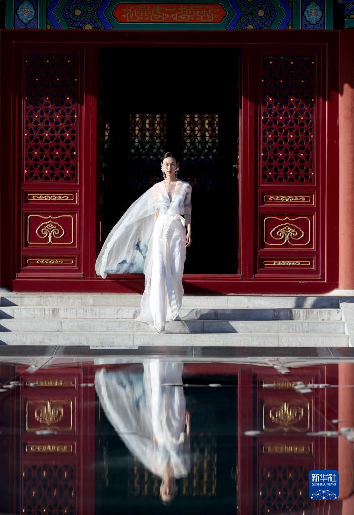3月18日,模特在展示知名時(shí)裝設計師熊英設計的具有非遺元素的時(shí)裝。