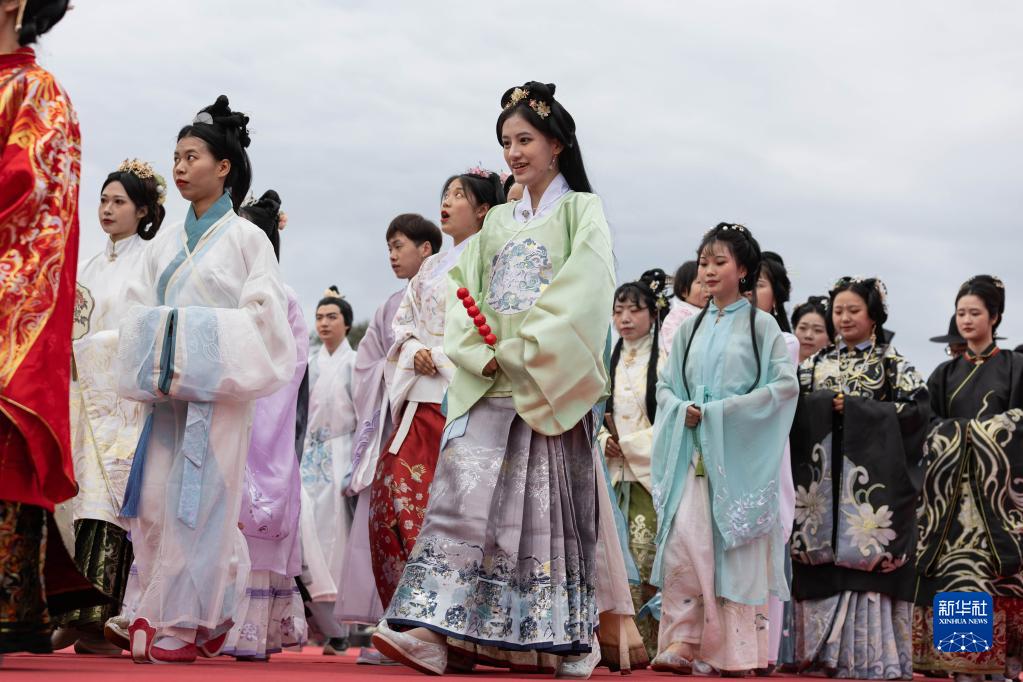 當日,為期三天的2023年中華民族服飾展演暨閬中漢服紀在四川省閬中古城舉行,全國各地傳統服飾愛(ài)好者齊聚閬中古城,穿漢服、游古城,“以服會(huì )友”。