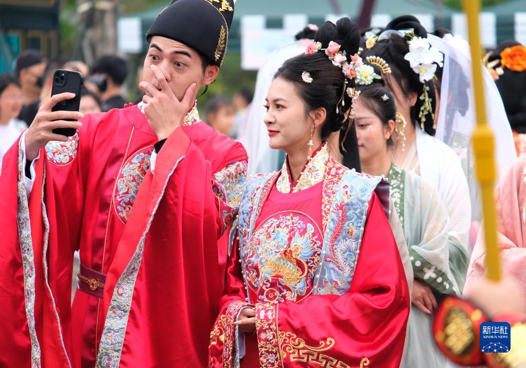 當日,廣西南寧園博園第二屆“禮樂(lè )園博·南寧花朝盛典”舉行。漢服新秀大賽、同袍巡游、明制婚禮儀式典禮、六藝游園等活動(dòng),讓人們身臨其境感受傳統文化的魅力。