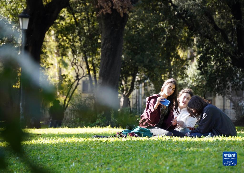 3月18日,人們在意大利羅馬的一處公園休閑。