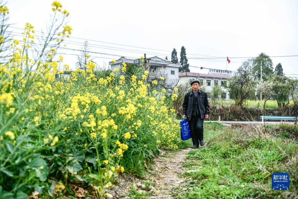 在龍里縣冠山街道高坪村,管水員陳光明前往村民家收取水費(3月23日攝)。