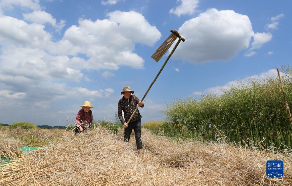 5月4日,在湖南省衡陽(yáng)市衡東縣楊林鎮,當地村民在采收油菜籽。