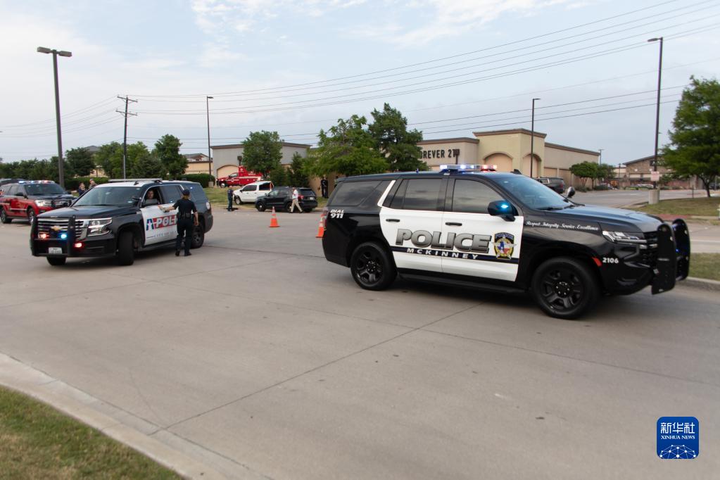 5月6日,警車(chē)停在美國得克薩斯州達拉斯近郊發(fā)生槍擊事件的購物中心附近。