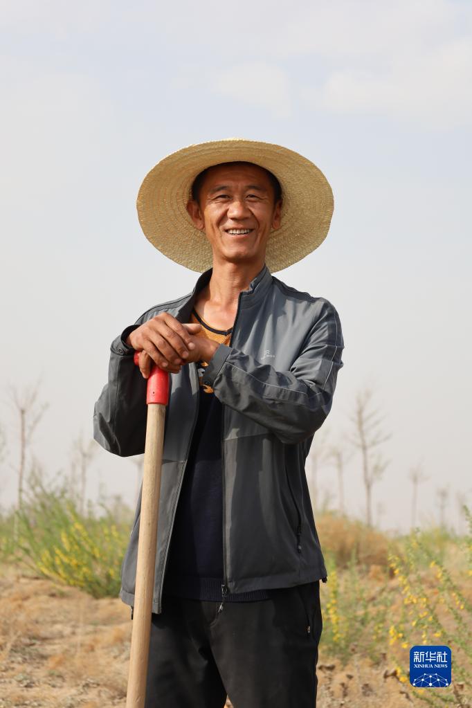 5月6日,在古浪縣的一片治沙區,第三代治沙人郭璽在勞作間隙休息。新華社記者 馬希平 攝