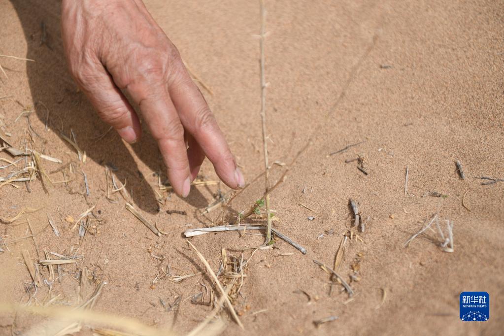 5月6日,八步沙第二代治沙人郭萬(wàn)剛在古浪縣的一片治沙區查看樹(shù)苗生長(cháng)情況。新華社記者 林立平 攝