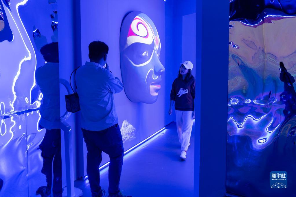 5月7日,在哈爾濱國際會(huì )展體育中心,觀(guān)眾在首屆東北亞文化藝術(shù)創(chuàng )意設計博覽會(huì )上參觀(guān)拍照。