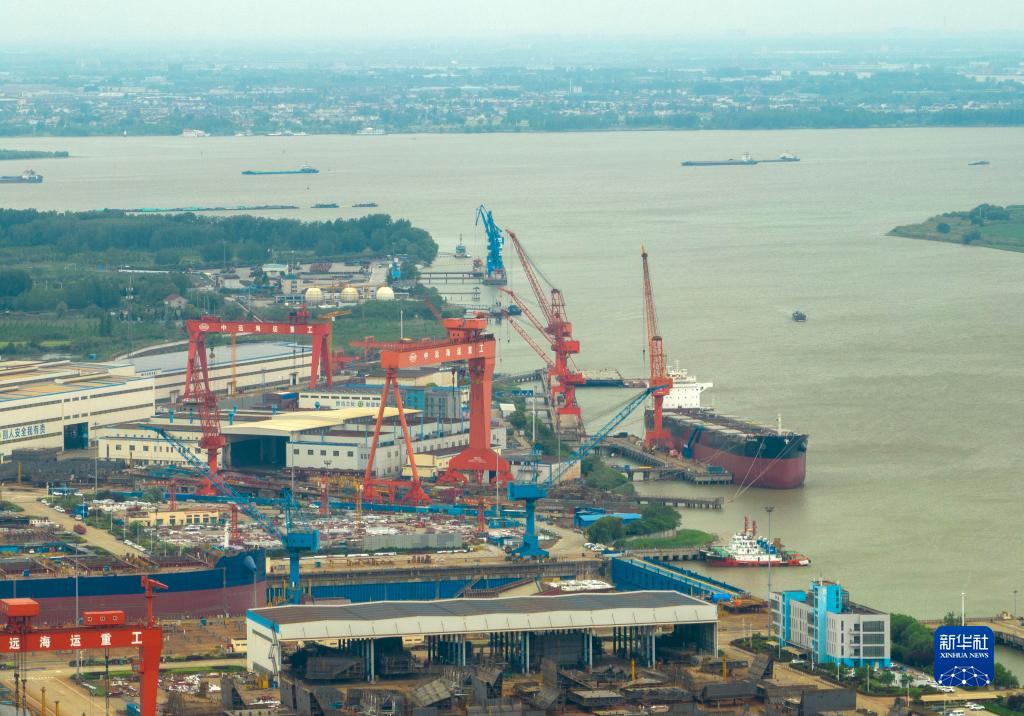 5月7日拍攝的揚州中遠海運重工有限公司生產(chǎn)廠(chǎng)區(無(wú)人機照片)。