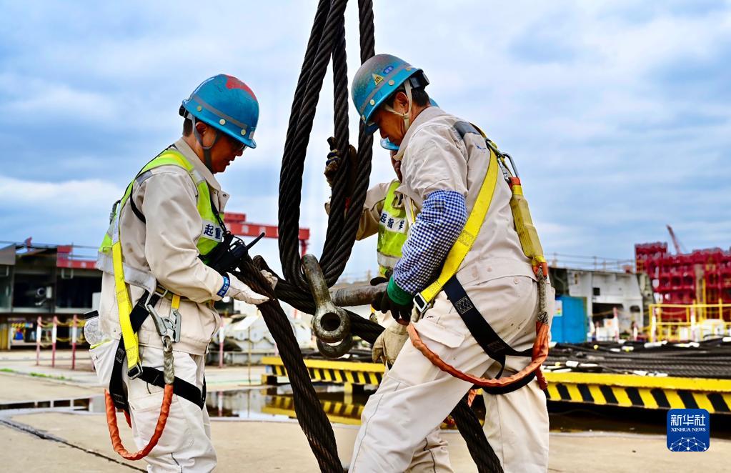 5月7日,在揚州中遠海運重工有限公司3號船塢內 ,工人在施工作業(yè)。