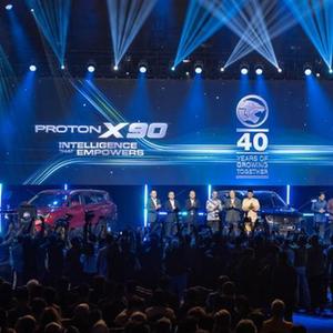 5月7日,來(lái)賓在馬來(lái)西亞吉隆坡舉行的寶騰新款車(chē)型X90發(fā)布儀式上合影。