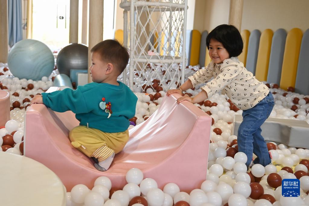 5月9日,小朋友在德清縣阜溪街道龍勝村嬰幼兒照護服務(wù)驛站玩耍。