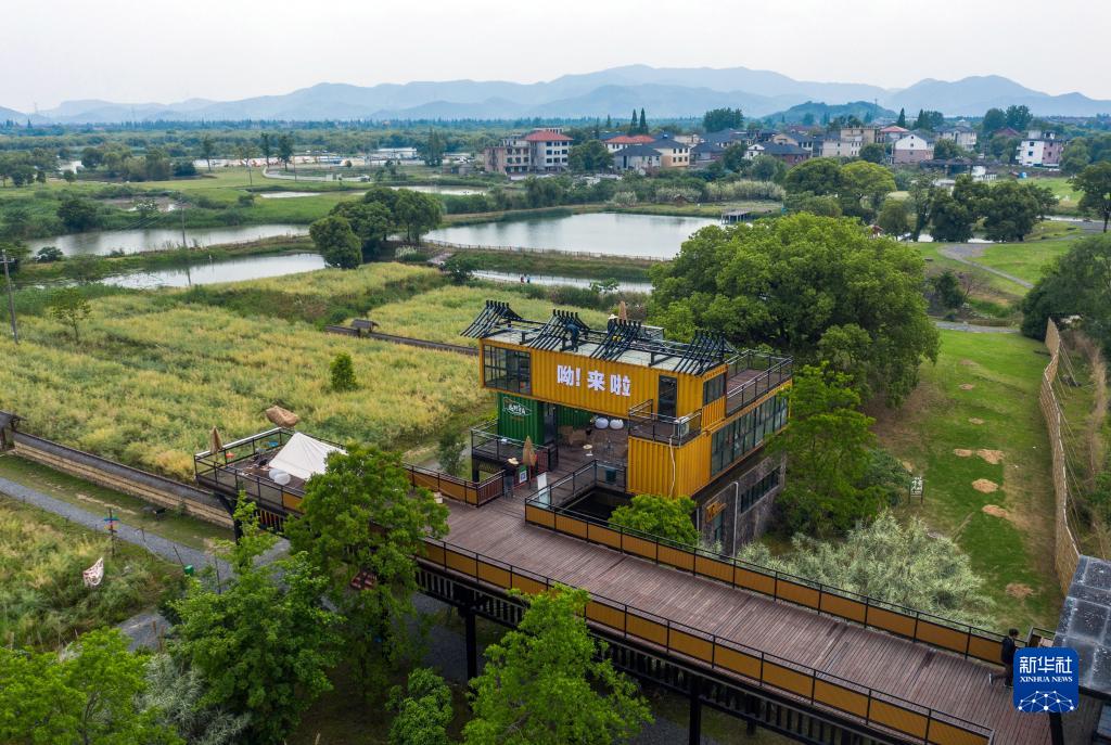 5月8日拍攝的德清縣下渚湖街道二都村(無(wú)人機照片)。二都村地處德清縣東部,山水秀美、人文薈萃。